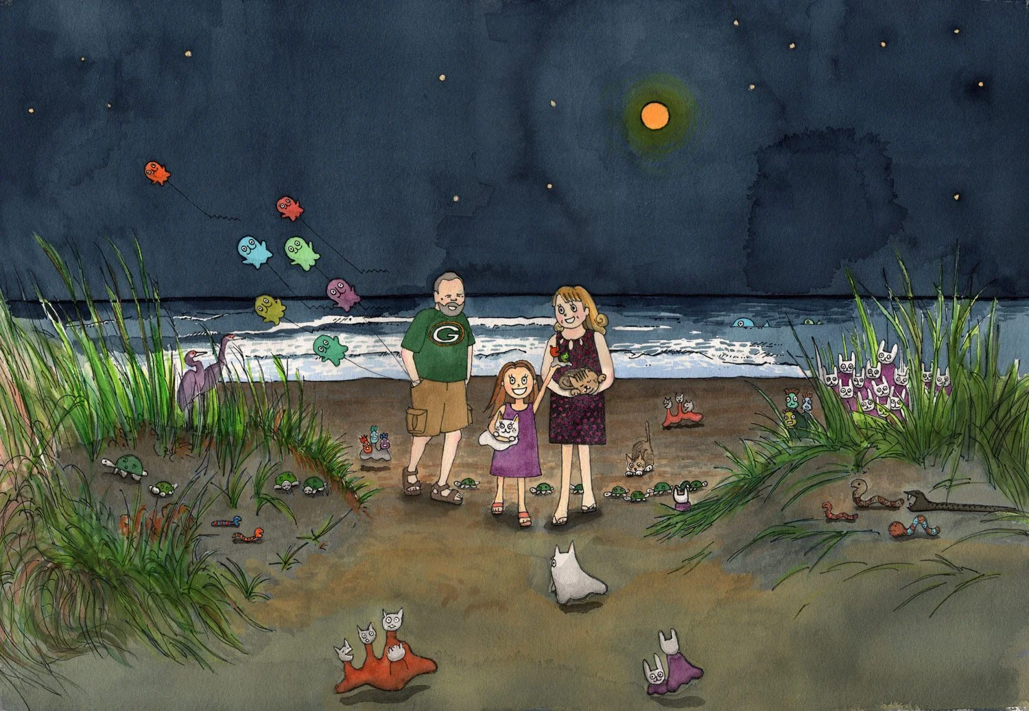 Junko came up with stories about the ghost cat and other protective ghost creatures, which she developed into a series of paintings.